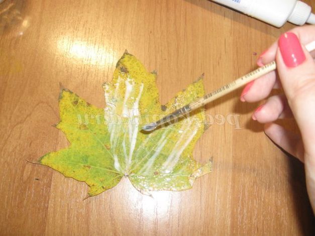 3. Наносимо на кленовий листок клей.