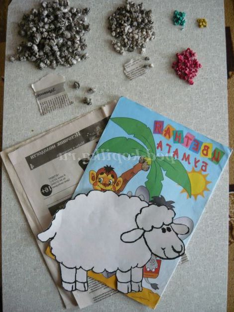 Намазуємо чубчик овечки клеєм ПВА і приклеюємо газетні кульки маленького розміру.