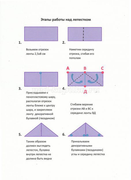 Приступаючи до виконання пелюсток, які щільно прилягають до пінопластової основі, розглянемо схему: