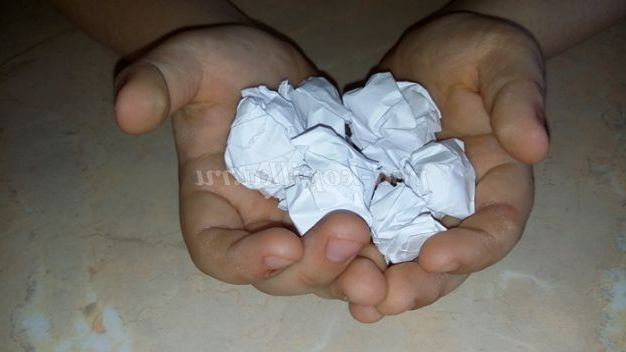 1.Берем кілька аркушів паперу і сминаем в грудочки.