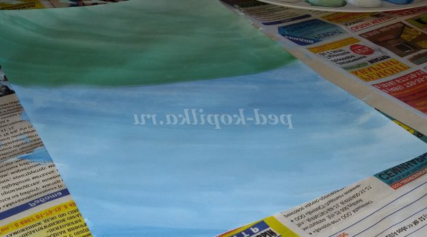2.Предварительно завдавши на аркуш паперу воду, починаємо задавати фон.