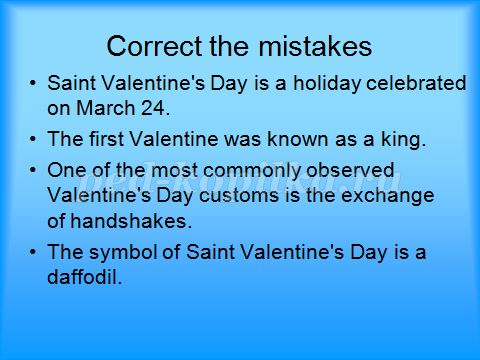 Love! Happiness! Beauty! Є re not so many days in a year when we pronounce these pleasant words. Today you have an excellent chance to plunge into the atmosphere of love and camaraderie, to take part in party games to practice the use of some pleasant words and expressions on this special occasion. Happy st. Valentine's Day!