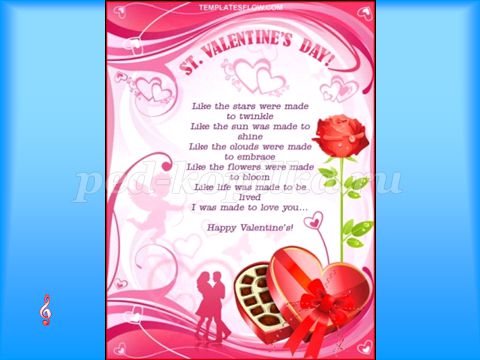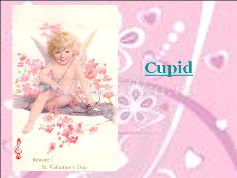 Світло вимикається, з'являється ангел закоханих: “This is a legend of how St. Valentine's Day began. When the Roman Emperor Клавдій II needed soldiers, he made a law against marrying because he felt that marriage made men want to stay at home instead of fighting at wars. But at that time there was a kindly priest, named Valentine. He couldn't agree with the emperor's decision. When he saw that were young couples truly in love, he married them secretly".