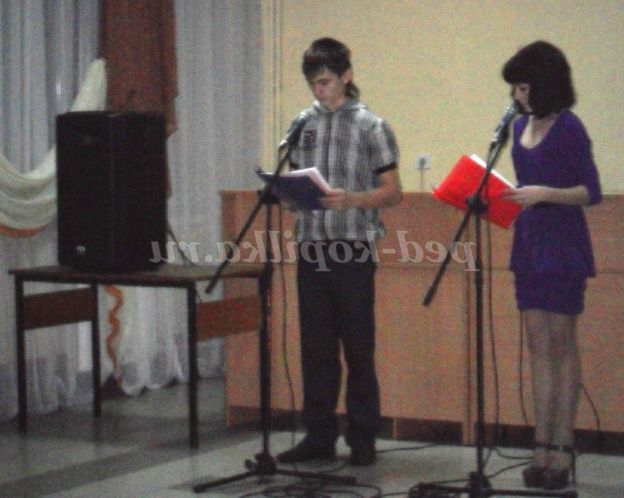 По сцені назустріч один одному повільно йдуть юнак і дівчина (ведучі свята). При цьому юнак читає вірш і дарує дівчині троянду.