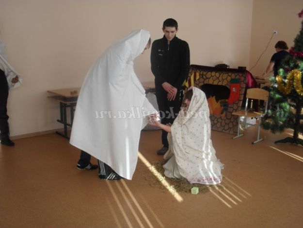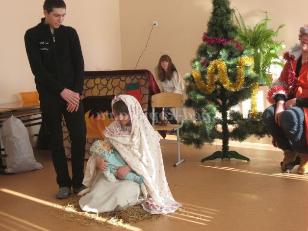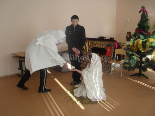 На сцену виходять актори, які розігрують сценку народження Ісуса.
