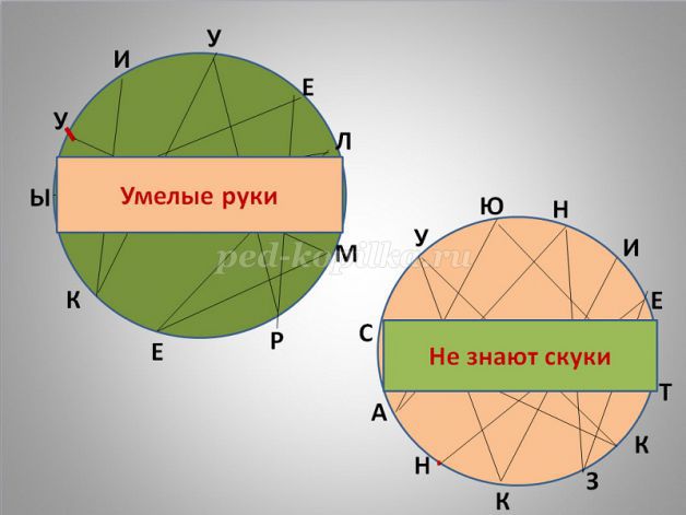 Корекційна вправа: На слайді зашифровано назву класного години, діти розгадують. Відповідь: «Умілі руки не знають скуки».