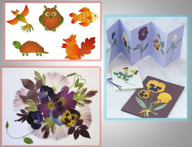 Обладнання: Кольоровий картон, кольоровий папір, ножиці, клей ПВА, засушені листя і квіти, пензлики.