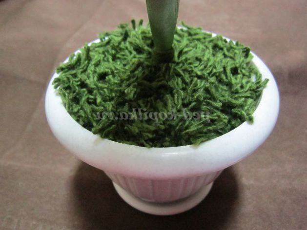 Приклеїти листя до стебла і обмотати низ стебла зеленої ниткою.