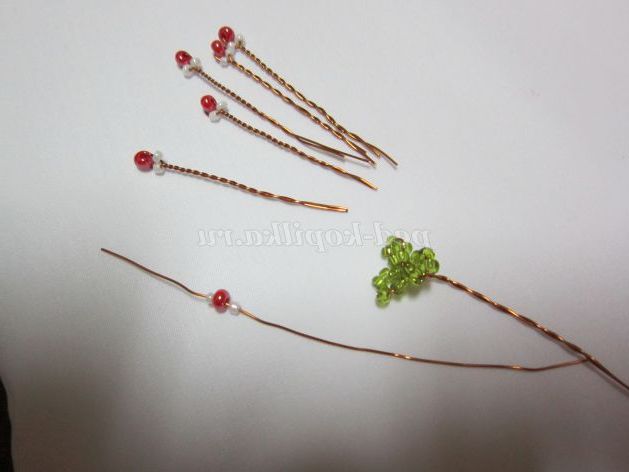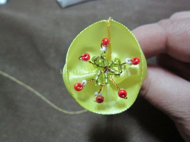 З тонкого дроту і бісеру зібрати тичинки і маточка, підготувати стрічки.