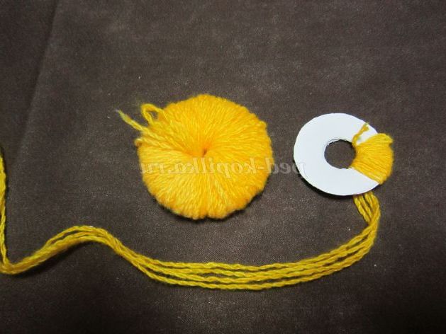 Подвійний ниткою стягнути помпон і розірвати картонні круги.