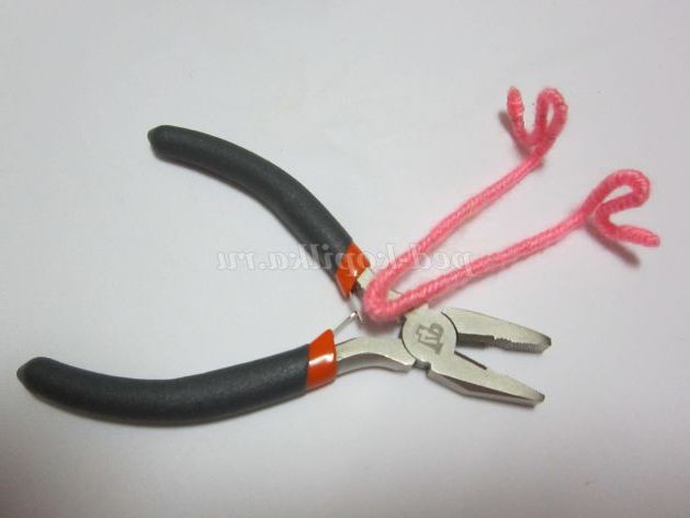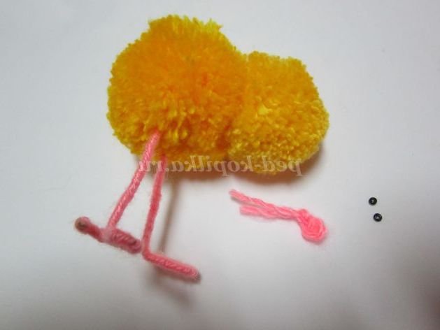 Ніжки формуємо за допомогою плоскогубців. Готову деталь ввести в центр великого помпона.