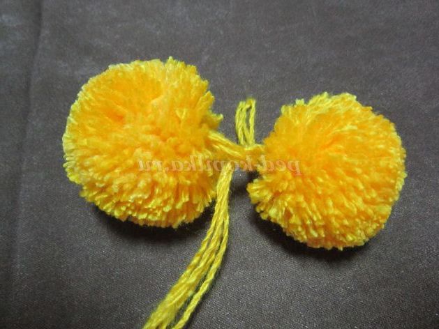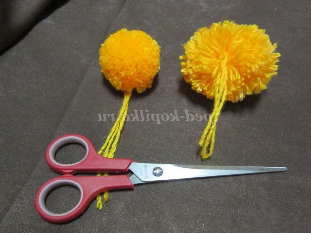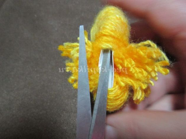 Отримані помпони нерівні, постукати ними по столу і постригти ножицями.