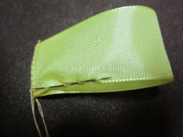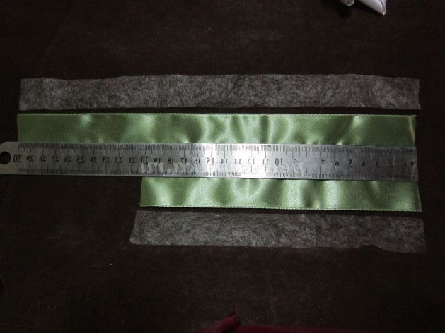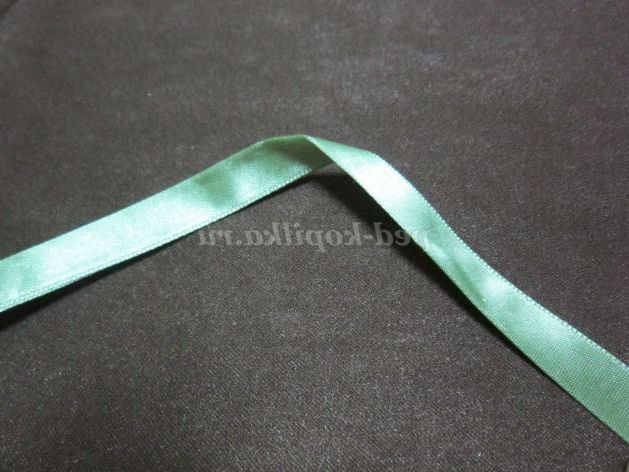Листя зробити легко - для цього зігнути стрічку уздовж навпіл і проклеїти в середині по всій довжині павутинкою за допомогою праски. Потім отримані вузькі стрічки зігнути навпіл і зробити 1 оборот.