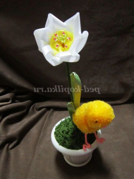 Розвести алебастр водою (1,5:1) і вийде гіпс. Залити його в квітковий горщик, закріпити нарцис, коли гіпс застигне.
