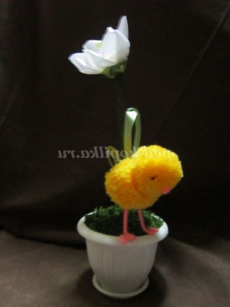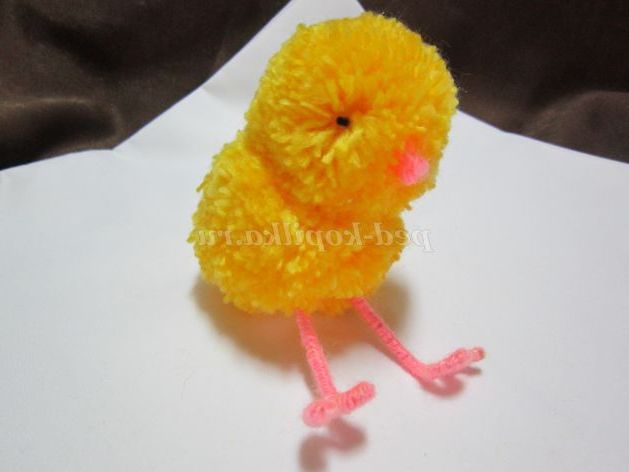 Дві чорні бісеринки змастити клеєм і приклейте до голови. Курча готовий!