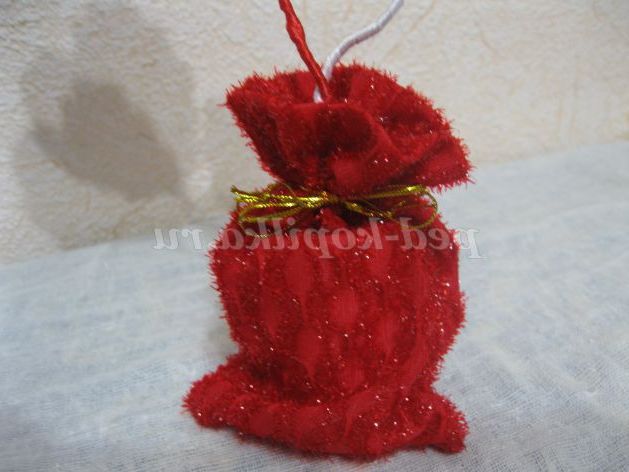 Беремо міні-мішечок для подарунків і одягаємо наш «горщик» в нього, зав'язуємо на бантик