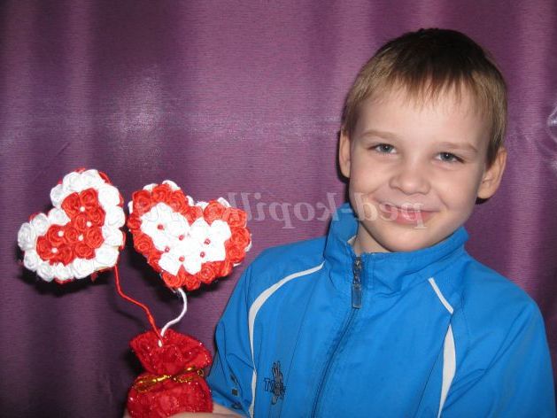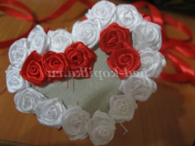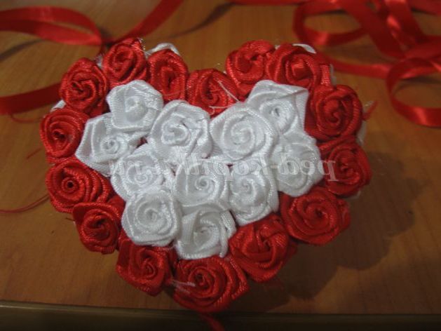 Сувенір з атласних стрічок до Дня Святого Валентина своїми руками. Майстер-клас з покроковими фото