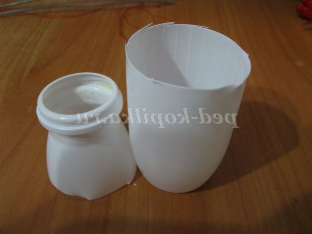 Беремо пляшку з під йогурту, обрізаємо верхню частину, ось так