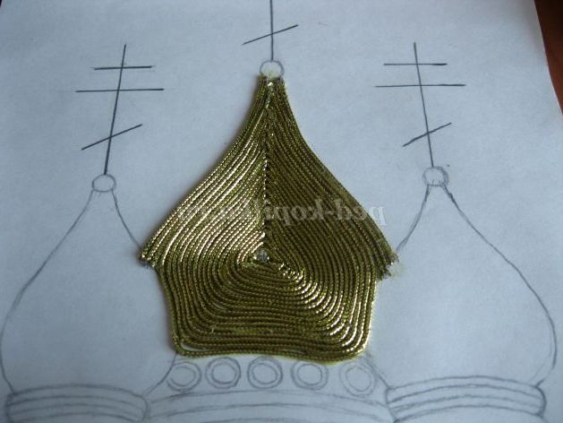 Тепер найцікавіше.... Беремо декоративний шнур кольору «золото», і починаємо обклеювати купол храму по колу