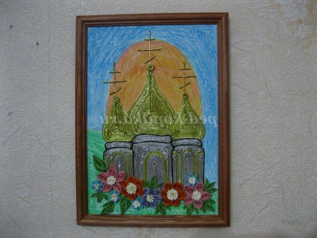Панно з декоративного шнура, із застосуванням техніки «квілінг» своїми руками «Храм Христа Спасителя».