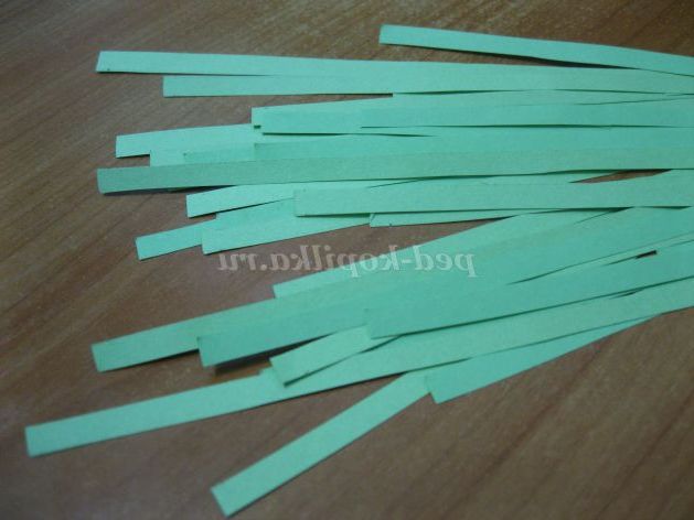 У всіх кольорів є листя. Нарізаємо смужки з паперу зеленого кольору по 0,5см завширшки