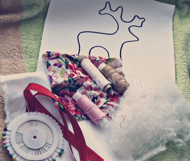 4 крок. Пришиваємо стрічку, щоб ми могли нашого оленя повісити на ялинку.