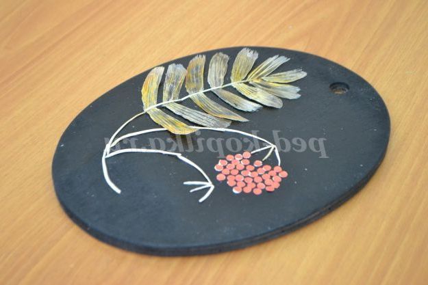 • Наклеюємо кісточки для оформлення гілочки горобини