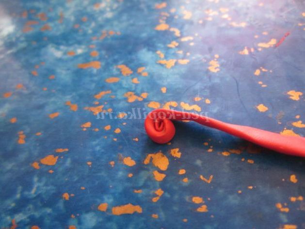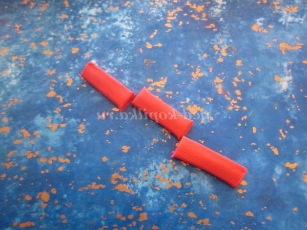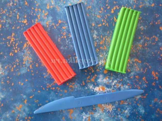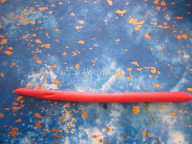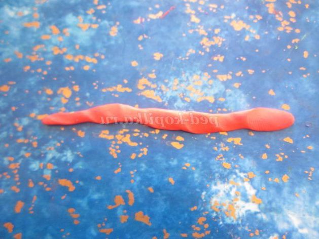 Для виготовлення троянд беремо червоний пластилін і відрізаємо смужку за допомогою стеки