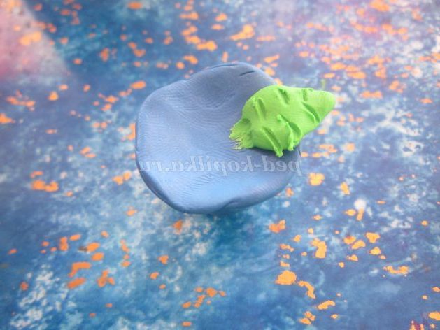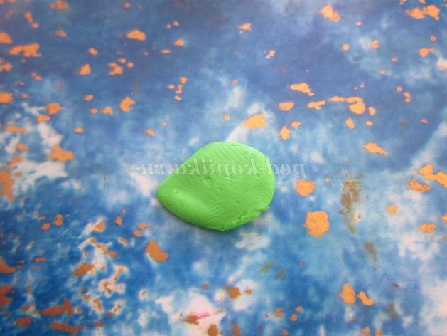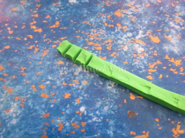 Тепер відрізаємо стеком смужку зеленого пластиліну