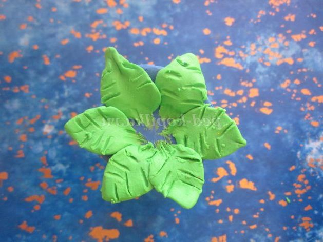 З допомогою стеки наносимо прожилки, і прикріплюємо листочок до вази
