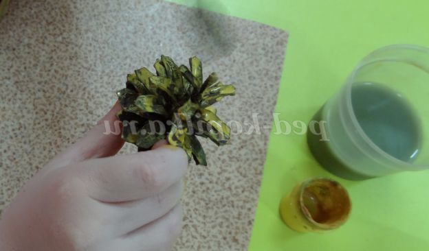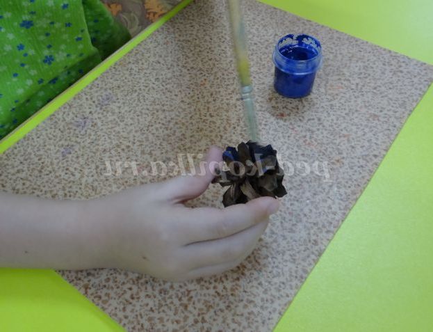 1. Розфарбовуємо з допомогою гуаші соснові шишки