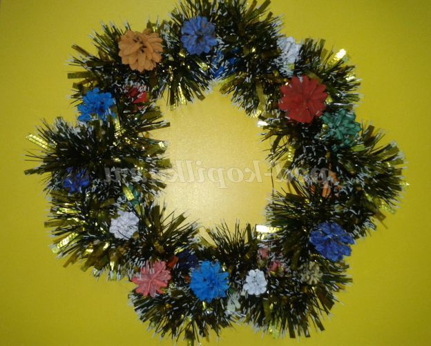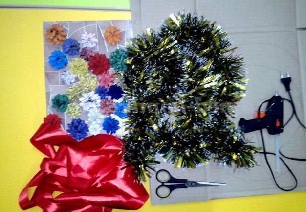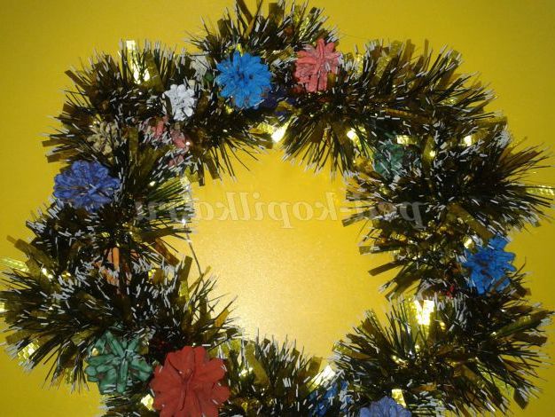 5. З атласних стрічок формуємо бантики і приклеюємо їх до вінка
