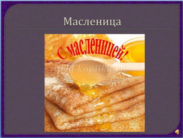 Ведучий: А якщо ви пам'ятаєте, то наша з вами зустріч проходить на п'ятий день масляного тижня. Масниця - свято, пов'язане з проводами зими і зустріччю весни. Масляний тиждень - це тиждень рясної і ситної їжі. Нехай всі негаразди підуть разом з холодною зимою, нехай добробут і радість принесе довгоочікувана весна.