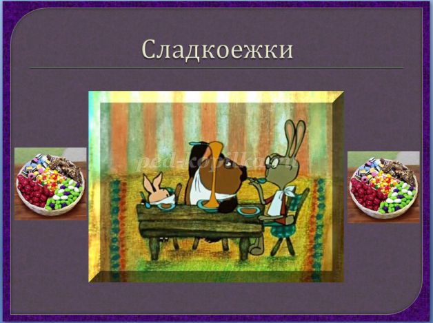 Ведучий: Як тільки учасник називає приказку чи прислів'я, то він отримує по одній цукерці з чаші. Перемагає та команда, яка запрацює велика кількість цукерок