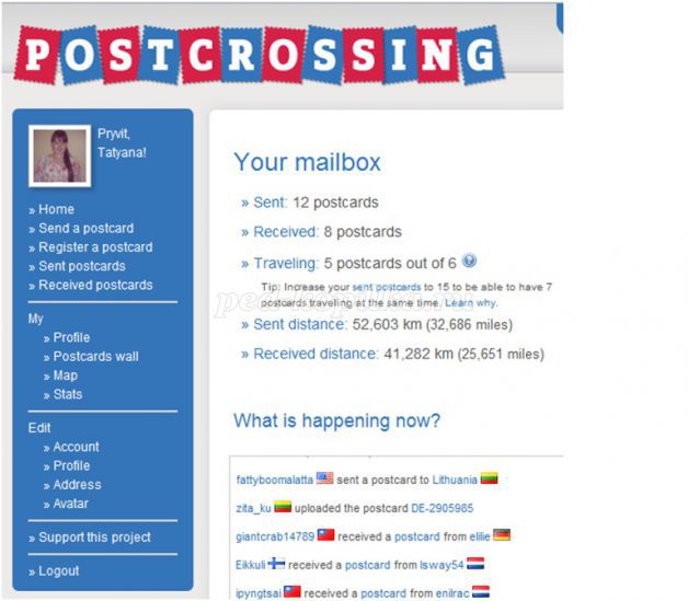 По мірі того, як список відправлених листівок збільшується, вам дозволяють відправити вже не 5, а 6, потім 7 і т.д. Коли ваші перші листівки відправлені, вашу адресу, яку ви вказуєте в своєму профілі, направляється людям в інші країни і через місяць або трохи більше ви отримуєте свою першу листівку і радієте як дитина