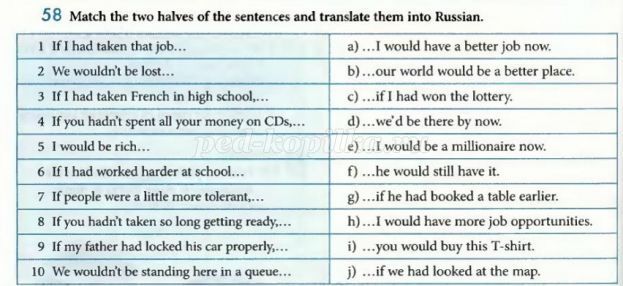 Look at exercise 58 please. I'll give you the time to match the two halves of the sentences and translate them into Ukrainian. Have you done it? Who would like to begin?