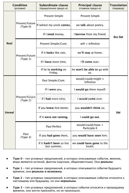 But first let's remember all conditionals. How many types are there in English language? This table is for you to fresh the memory.