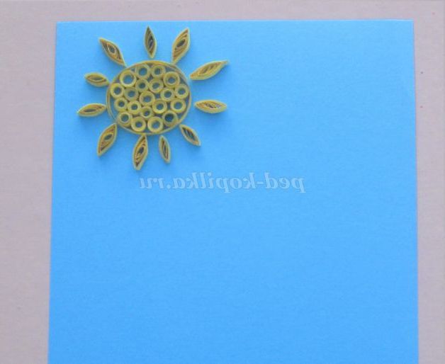 Використовуючи блакитний фон, складаємо композицію. Викладаємо роли у формі сонечка