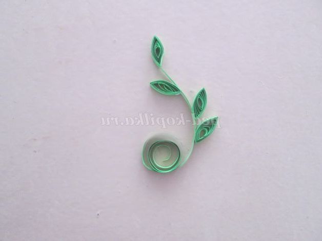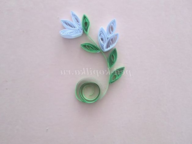 Для завершення композиції виготовимо квіти підсніжника. Для цього використовуємо білі і зелені роли. Замість білих можна використовувати і жовті, тоді квітка буде жовтим.