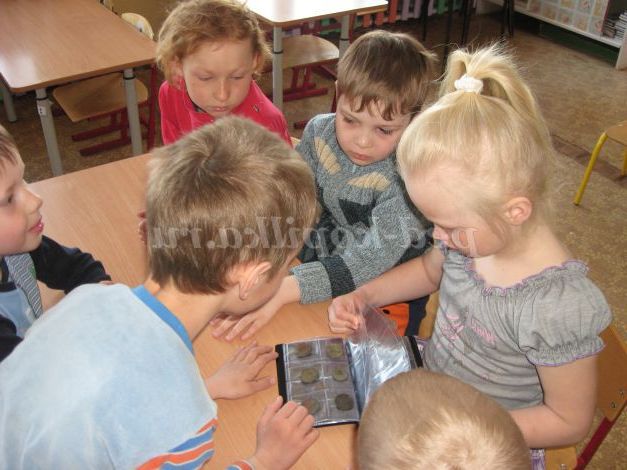 Після проведених бесід діти відображали свої знання і враження у малюнках, виробах, виготовлених в дитячому садку і разом з батьками. Хлопці стали приносити в групу і розглядати старовинні гроші, різні монети, що послужило ідеєю для створення в групі міні - музею «Грошик».