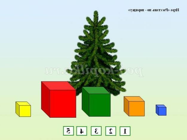 Завдання: Дорослий пропонує розглянути зображення новорічних подарунків (коробок), полічити їх і «розставити» по - порядку, за величиною, у зростаючому або спадаючому порядку, позначаючи цифрами (від 1).