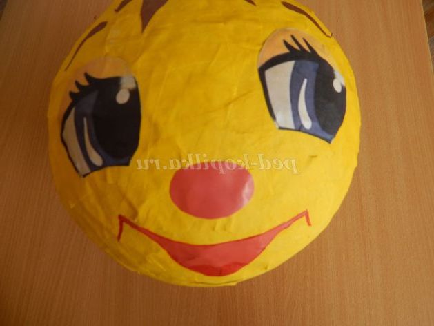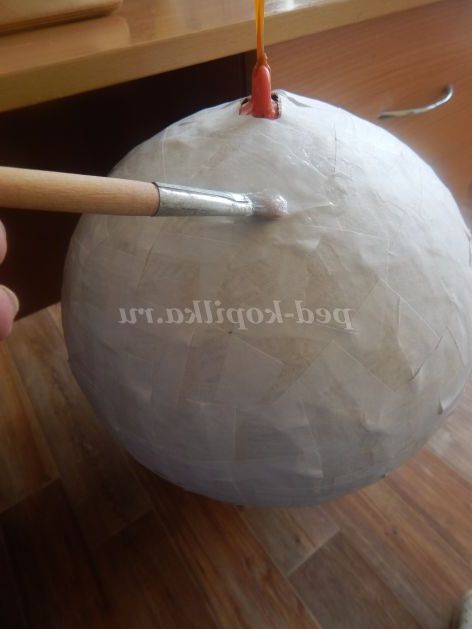 Взяла велику повітряну кулю,надула його до потрібного размера.Нарвала папір зі старої непотрібної книги,умочувала її в воду і наклала перший шар на шар.