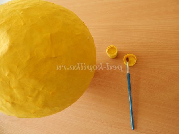 Так проклеївши кілька шарів паперу, останній шар я вирішила зробити з яскраво - жовтого паперу.