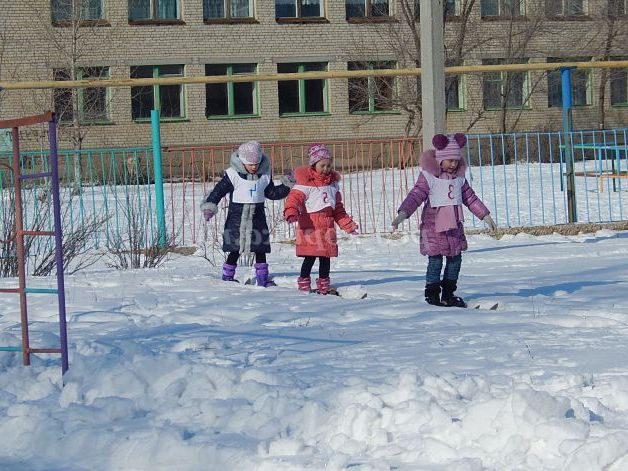 Середня група змагалася у фігурному катании.Дети виконували різні рухи фигуристов.На дівчаток були одягнені пухнасті,легкі спіднички.