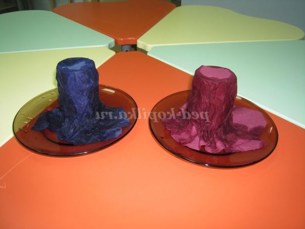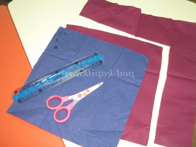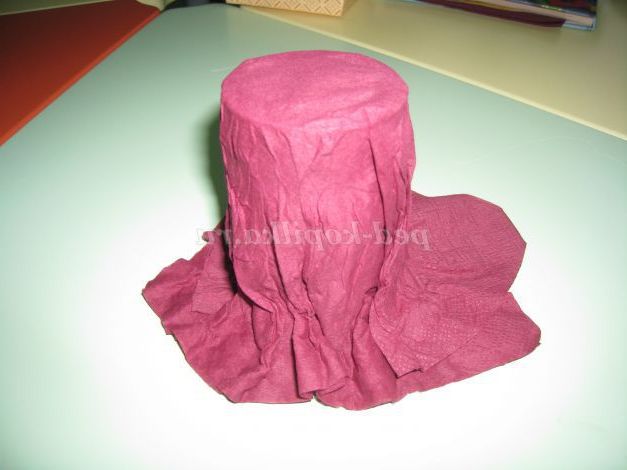 З великих серветок вирізати два квадрата 24х24 див. Отримані квадрати загорнути навколо циліндра, злегка змочити водою, щоб тримали форму. Залишити сохнути в теплі.