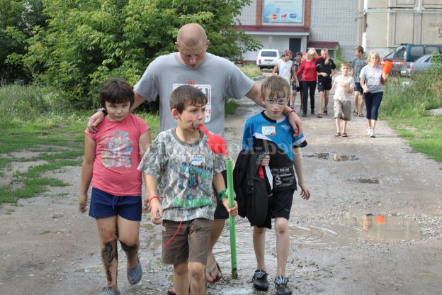 всі забруднилися (бо раптом пішов теплий літній дощ) і довелося грати в " зірницю на розкислому футбольному полі...