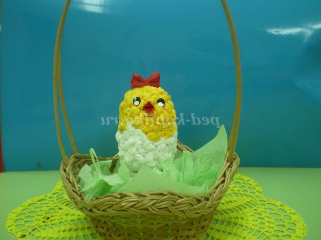 Майстер клас "Великоднє диво" Мета: декорування великодньої сувеніра - курча з допомогою паперових серветок. Завдання: - навчити різним прийомам роботи з папером;; - розвивати фантазію і творчі здібності дітей; - розвивати трудові навички самостійної художньої діяльності; - створити позитивний емоційний настрій. Призначення: Майстер-клас пропоную використовувати педагогам дошкільних і шкільних установах для дітей старших, підготовчих груп і початкових ...