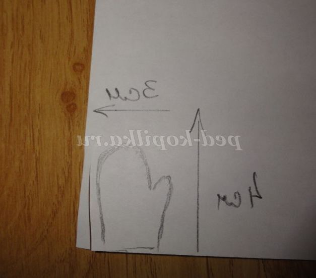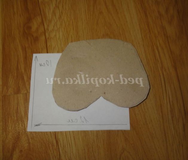 Беремося за ніжки. Вирізати з цупкого картону ( прямокутник 10-12см) ніжки - лапки і вкласти картон в зшитий мішечок з тканини такий же за формою і розміром