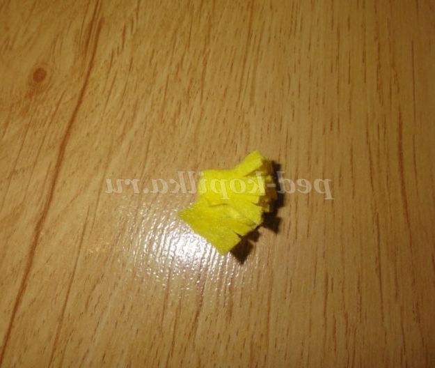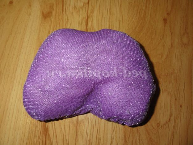 Виготовляємо ручки. Половинки гумки вивернути, щоб не було видно шва, наповнити синтепоном