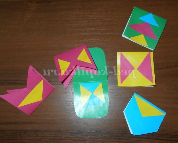 Отримані прямокутники складаємо навпіл. Із заготовок ми можемо зробити трикутники й овали.